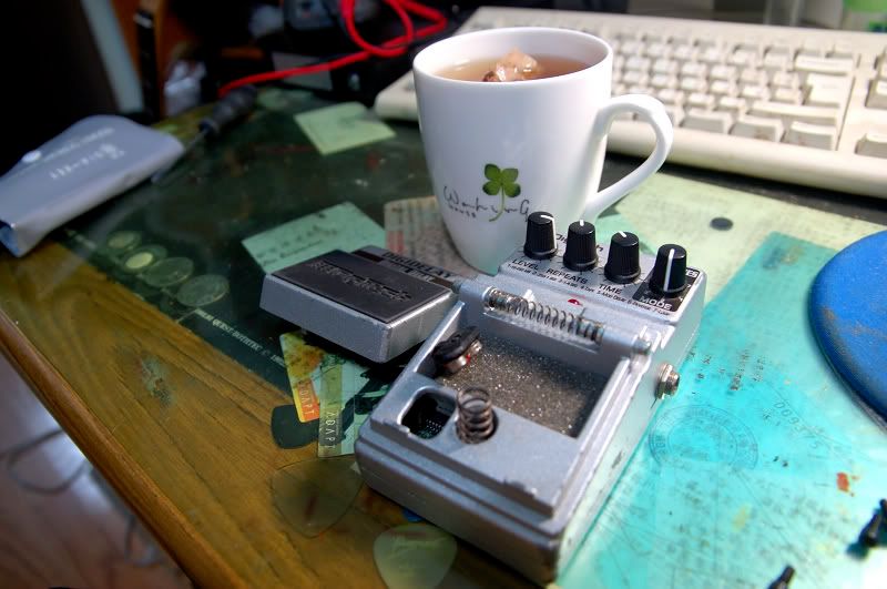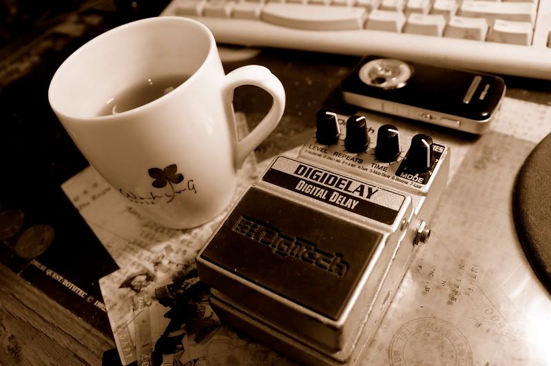 測試完畢的Digitech DigiDelay與未喝完的紅茶
